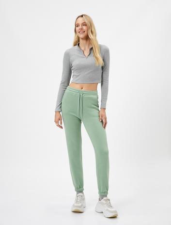 Şardonlu Jogger Eşofman Altı Beli Lastikli Bağcıklı Cep Detaylı