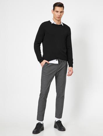 Beli Bağlamalı ve Lastikli Kareli Rahat Kesim Pantolon Sepete Ekle
