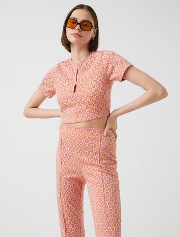 Crop Pencere Detaylı Kısa Kollu Tişört