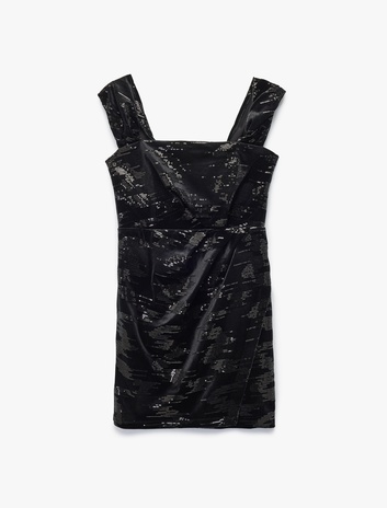 Boyundan Bağlamalı Büzgülü Mini Elbise
