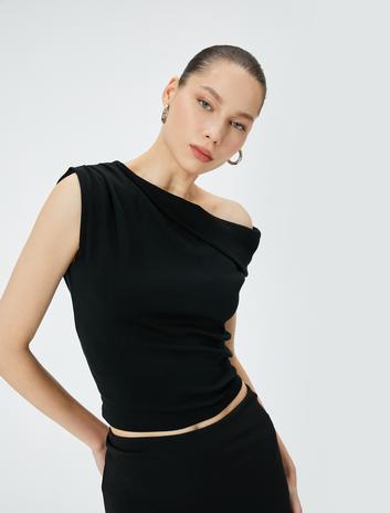 Tek Omuz Üst Omzu Açık Drapeli Slim Fit Pamuklu Sepete Ekle