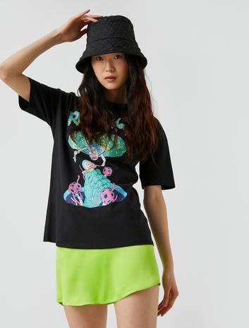 Pamuklu Baskılı Kısa Kollu Bisiklet Yaka Oversize Tişört Sepete Ekle