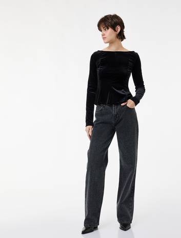 Düğmeli Cepli Pamuklu Normal Bel Düz Paça Taşlı Jean Pantolon - Straight Fit Jean