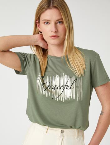 Parlak Baskılı Tişört Kısa Kollu Bisiklet Yaka Sepete Ekle