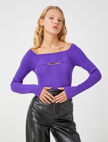 Triko Omzu Açık Madonna Yaka Kazak Pencere Detaylı