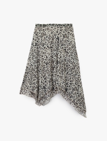 Asimetrik Kesim Slim Fit Midi Leopar Etek