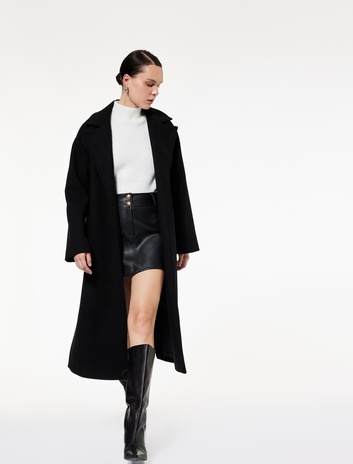 Uzun Kollu Kruvaze Kemerli Uzun Kaşe Kaban Sepete Ekle