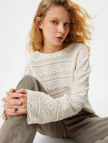 Bisiklet Yaka Sweatshirt Uzun Kollu Basic Pamuklu