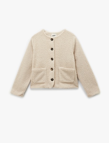 Düğmeli Cep Detaylı Uzun Kollu Bisiklet Yaka Peluş Bomber Ceket Sepete Ekle