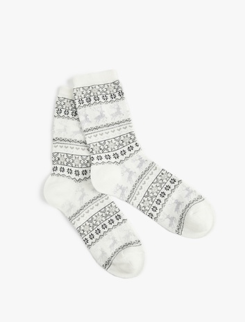 Kadın Yılbaşı Baskılı Pamuklu Havlu Soket Çorap