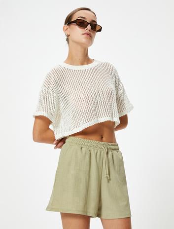Mini Şort Dokulu Beli Bağlamalı Cepli