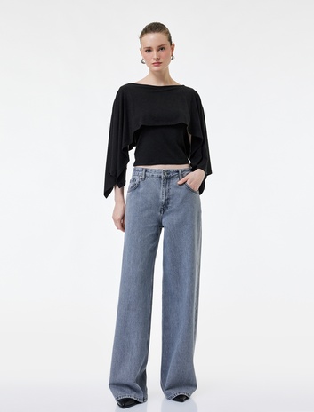 Madonna Yaka Tişört Omzu Açık Pencere Detaylı Pamuklu Sepete Ekle