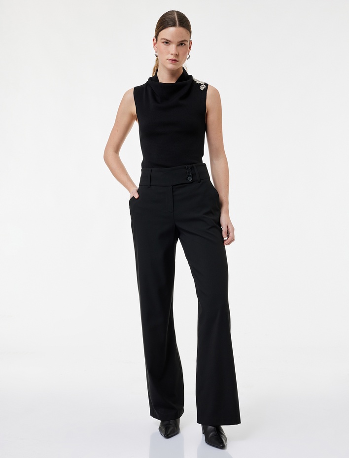 Normal Bel Dokulu Uzun Bol Paça Pantolon