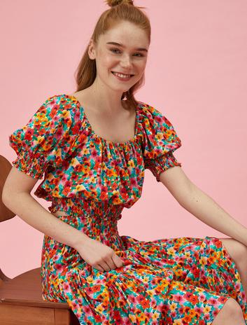 Melis Ağazat X Koton - Çiçekli Kısa Kollu Crop Tişört Sepete Ekle