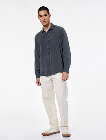 Keten Gömlek Uzun Kollu Düğme Detaylı Gömlek Yaka Regular Fit