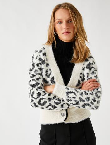 Leopar Desenli Hırka Taş Düğmeli