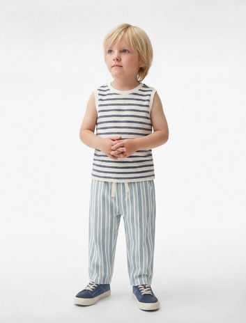 Erkek Bebek Kolsuz Bisiklet Yaka Pamuklu Çizgili Atlet