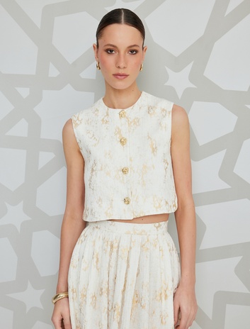 Gold Düğme Detaylı Desenli Müslin Crop Yelek Sepete Ekle
