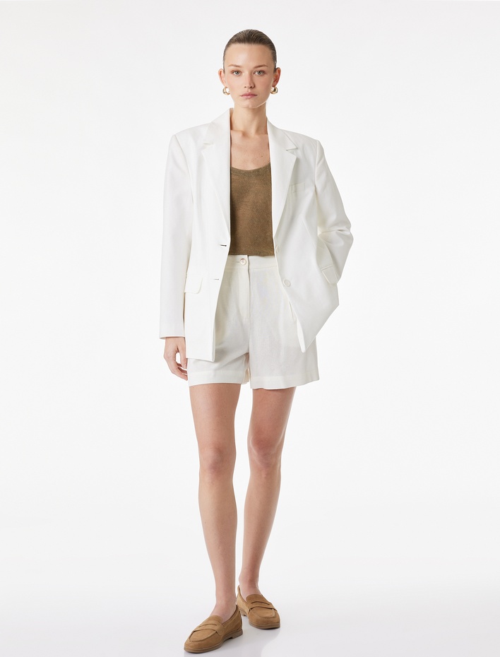 Cep Detaylı Yüksek Bel Düğmeli Keten Karışımlı Bermuda Şort Sepete Ekle