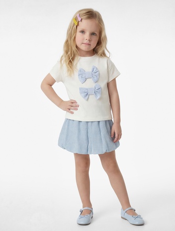 Pamuklu Fiyonk Aplike Detaylı Kısa Kollu Bisiklet Yaka Tişört Sepete Ekle