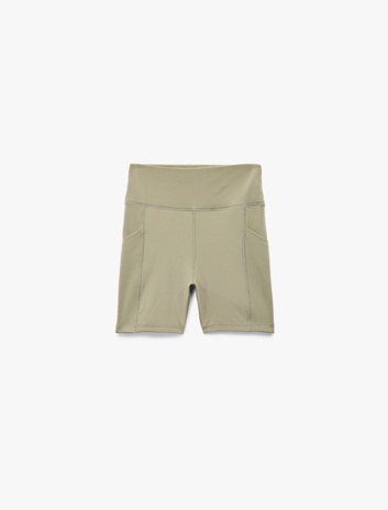 Yüksek Bel Cepli Dikiş Detaylı Biker Spor Tayt